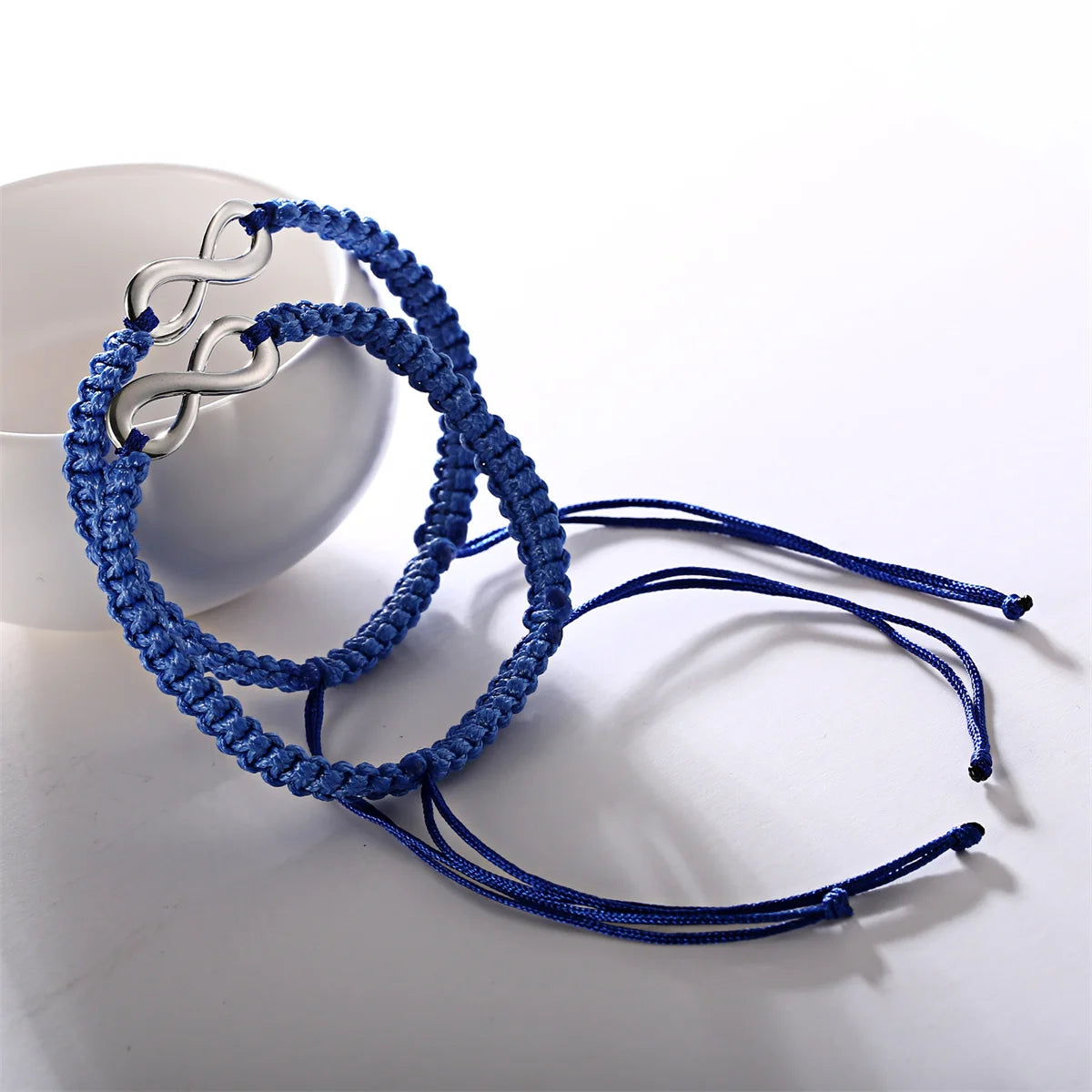 These handmade infinity bracelets are woven with soft cord and a polished silver-tone charm — representing endless love, balance, and togetherness.